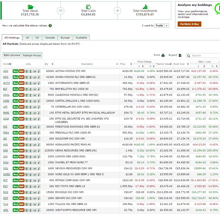 I have partly funded these new purchases through the sale of half of my holding in Keras Resources (200,000 shares at 1.08p). I bought this micro-cap stock at 0.47p per share because I like the management and the African assets. Over the past 3 months it has morphed into a small-scale Australian gold producer and without having had a really close look I am not entirely convinced I am excited about the change. In any event with the stock up over 100% I sold half – sod’s law it is up a further 40% since. I have also sold the remainder of my Gem Diamonds (2,250 shares at 109p) but retain diamond exposure through FDI.